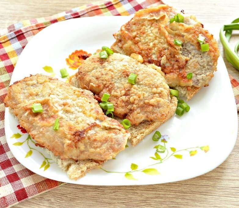 В отдельной посуде яйца взбивают до однородной массы с помощью миксера. Каждую отбивную обмакивают в яичную смесь.