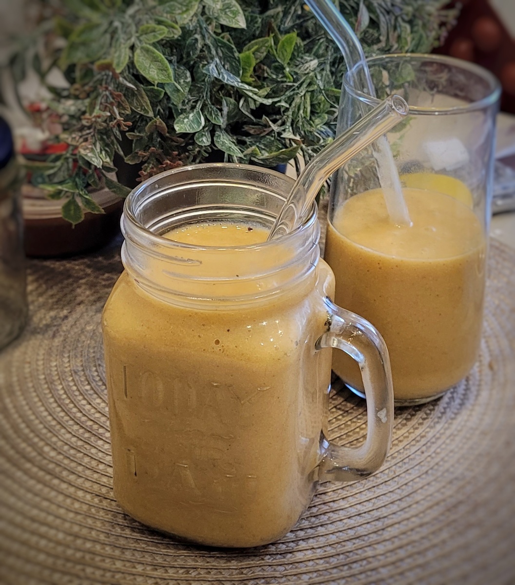 Смешайте все ингредиенты в блендере, после чего добавьте воду, если вы хотите сделать напиток более жидким. Взбивайте до получения однородной массы, и ваш смузи готов!