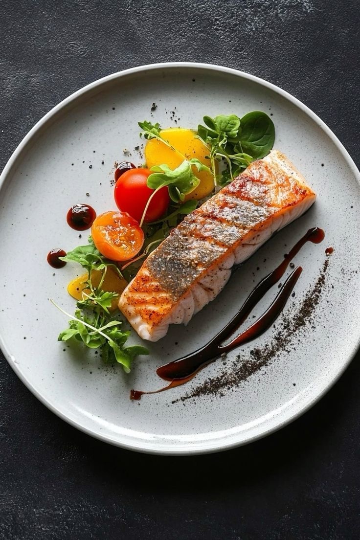 Расположение рыбы на тарелке имеет значение. Небольшой наклон или размещение рыбного филе немного на стороне создаёт эффект объёмности. Важно помнить: рыба — главный компонент, а гарнир — её компаньон.