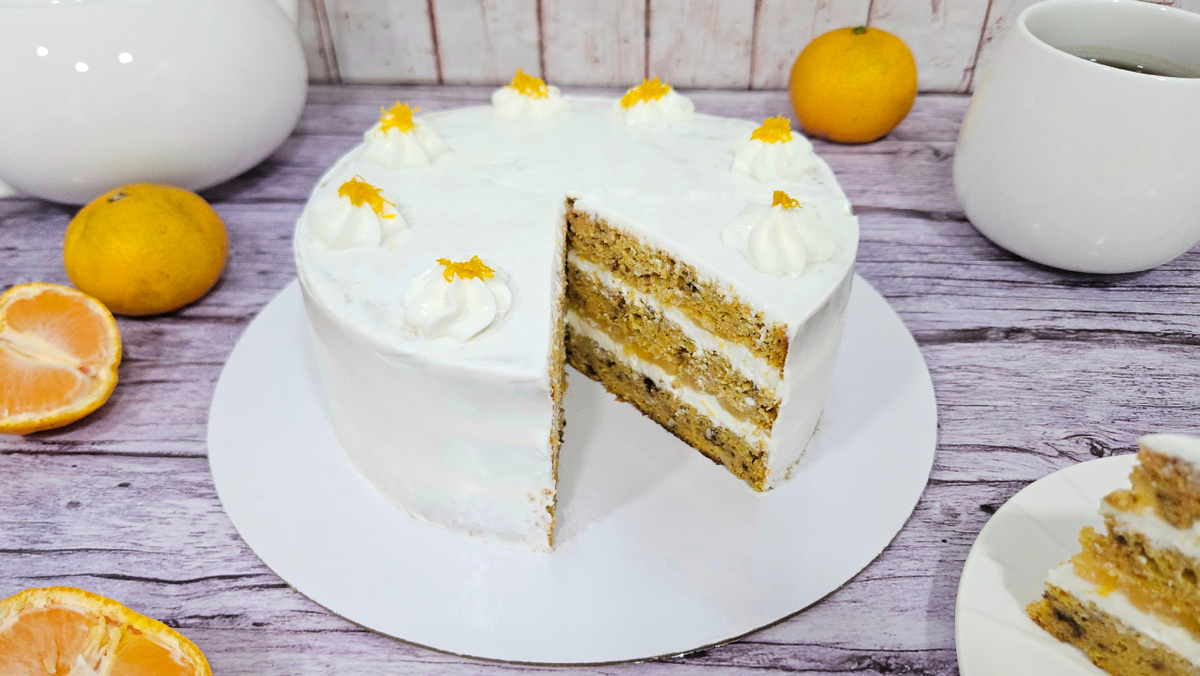На пороге новогодние праздники, и время удивить близких полезным и вкусным десертом! Представляем яркий диетический морковный торт с творожно-сливочным кремом и мандариновым конфитюром, который станет настоящим украшением вашего стола.