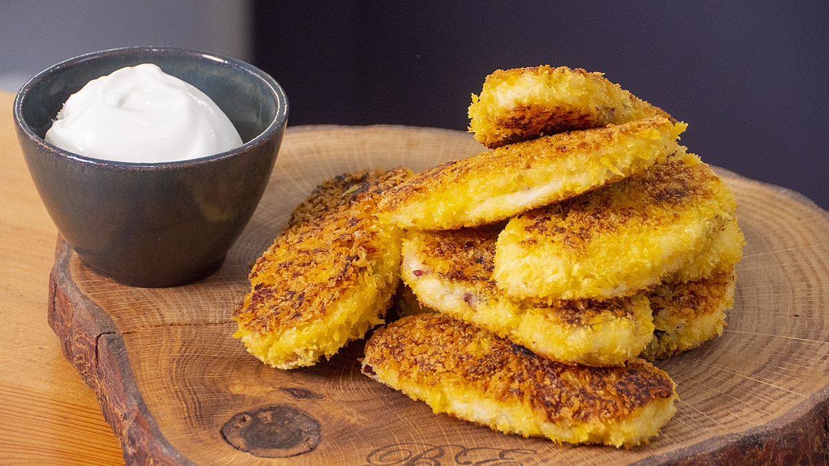 На следующем этапе сформируйте из полученной массы продолговатые котлеты и обваляйте их в панировочных сухарях. Жарьте на раскалённом растительном масле, до получения золотистой корочки с обеих сторон.