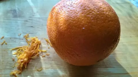 После этого срежьте цедру с крупного апельсина, выжмите сок и прокипятите эту смесь в сотейнике на небольшом огне в течение нескольких минут.