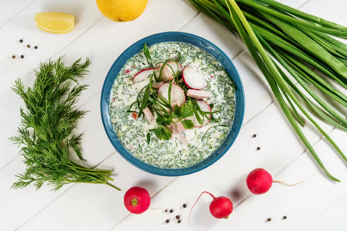 Летний фаворит под названием "окрошка на сыворотке" — это холодный суп, который идеально освежает в знойные дни. Он прекрасно подходит как для обеда, так и для ужина, заряжая энергией и витаминами. Сыворотка, используемая в качестве основы, не только придаёт блюду вкусовую пикантность, но и обогащает его кальцием и микроэлементами. Этот освежающий напиток также можно либо купить в магазине, либо приготавливать самостоятельно при изготовлении творога.