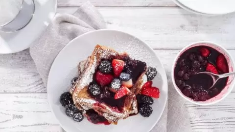 6. Подавайте горячими, полив ягодным соусом. Это простой и сытный завтрак, который отлично скрасит любое утро.
