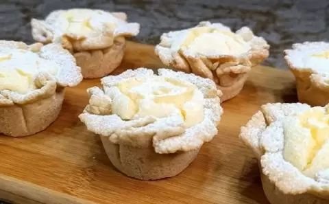 Приготовление начинки требует тщательности: творог нужно взбить с остальными ингредиентами до кремообразного состояния. Заготовленное тесто помещается в формочки с начинкой, и краешки аккуратно собираются.