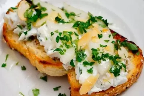 - Тосты с рикоттой и яйцом — идеальное сочетание для утреннего пробуждения.