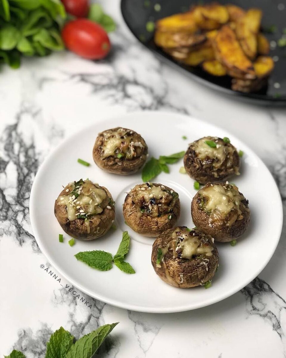 Как приготовить запеченные шампиньоны с веганским сыром