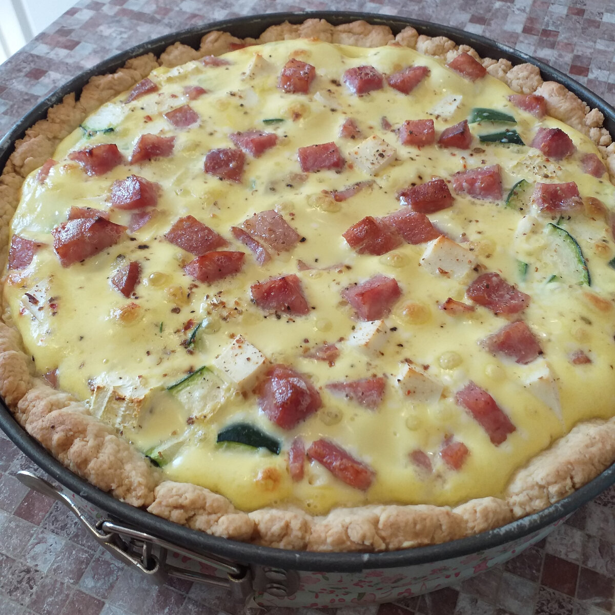 Этот киш с кабачком, ветчиной и фетой украсит любой стол и станет настоящей находкой для любителей новых вкусов. Приятного аппетита!