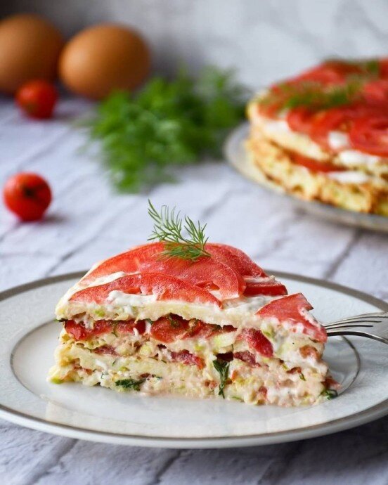 Легкий кабачковый торт: изысканный вкус с томатами и зеленью