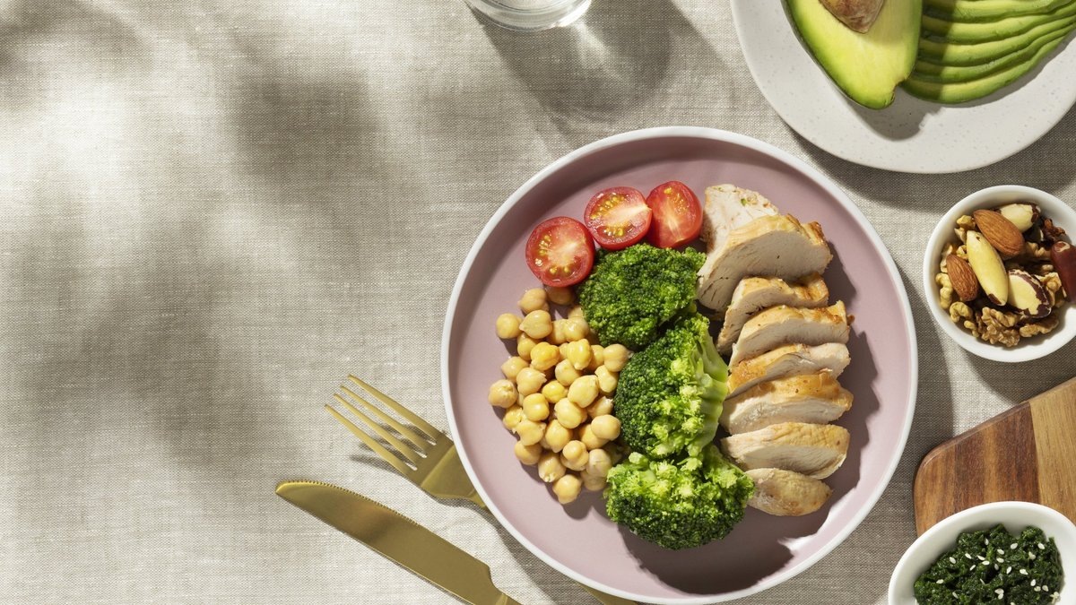 Для визуального деления лучше использовать тарелку диаметром 20-25 см. Разделите её на три сектора: первая половина должна заполняться овощами и фруктами (с предпочтением к некрахмалистым овощам и разнообразию цветов), одна четверть отводится под цельнозерновые продукты (такие как бурый рис, киноа, цельнозерновой хлеб), а оставшаяся четверть отведена под белковую пищу (рыба, мясо, кальмары, яйца, бобовые).