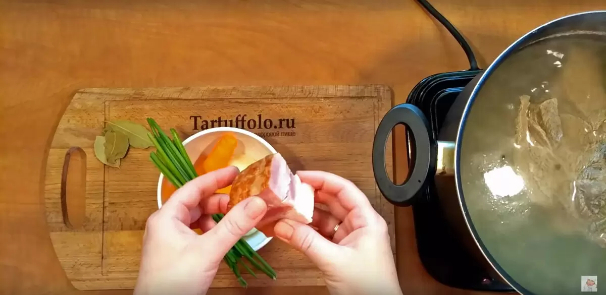 После того как мясо начнёт закипать, нужно уменьшить огонь до минимума и томить его в течение двух часов. Добавление соли и чёрного перца, а также периодическое удаление пены сделают бульон ещё более привлекательным. Небольшой кусочек копчёной грудинки придаст блюду неповторимый вкус.