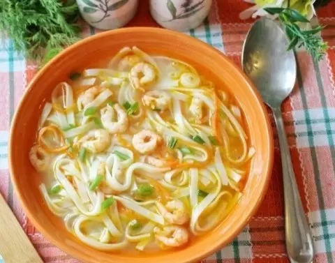 Порадуйте себя и близких изысканным супом с креветками и лапшой! Этот легкий и ароматный блюдо отличится нежным вкусом и нотками свежести, благодаря простым ингредиентам, которые можно легко найти на кухне.