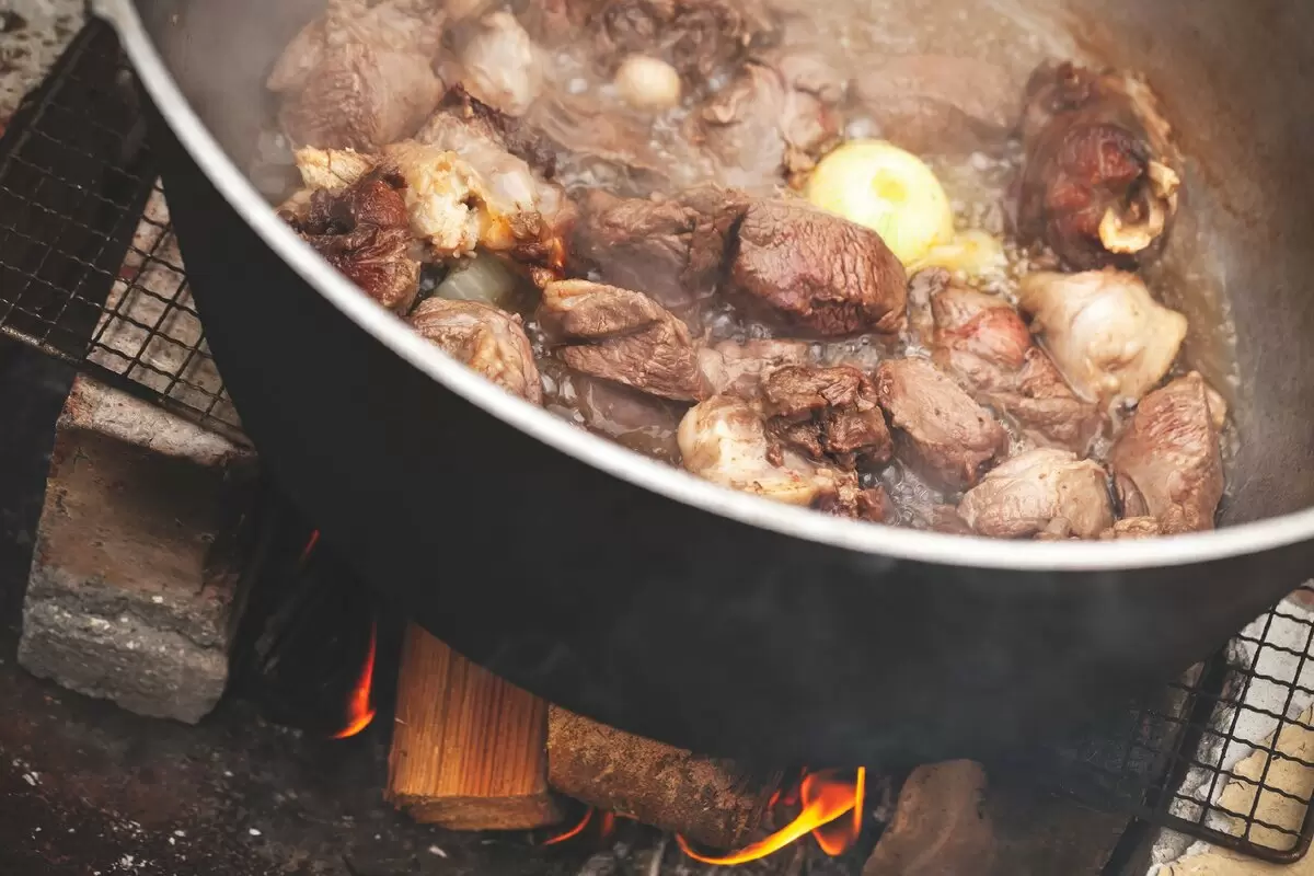 - Сытная версия: включает предварительное обжаривание ингредиентов в казане, а затем тушение.