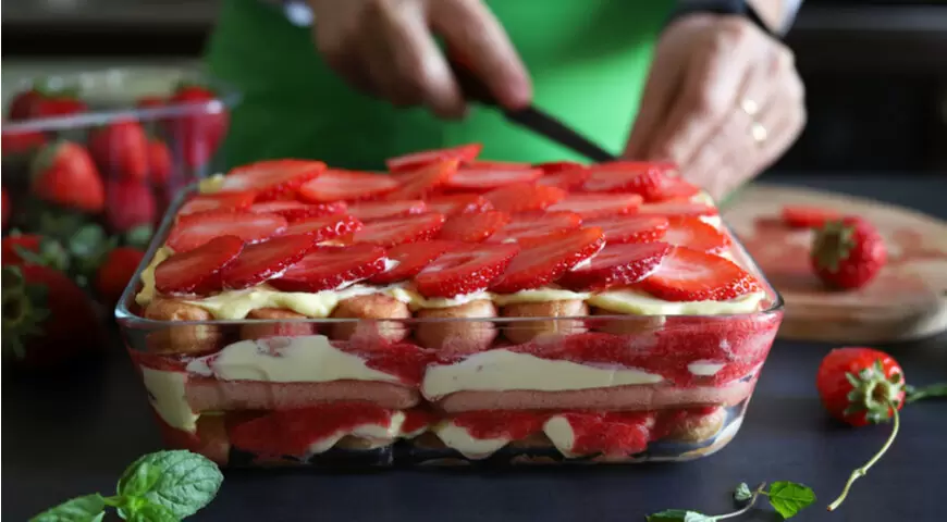Чтобы побаловать себя и своих близких клубничным тирамису, который подойдет на 8-10 порций, понадобятся следующие ингредиенты: