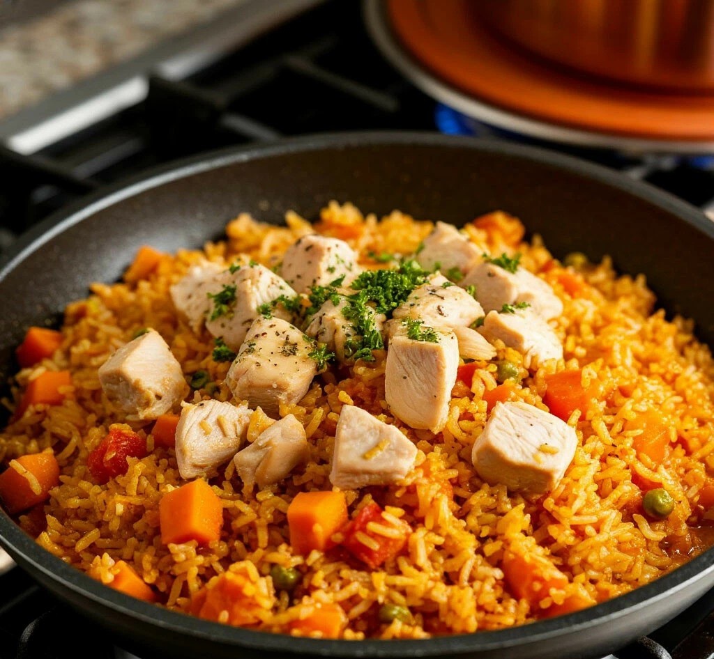 - Нежность и легкость: куриное мясо готовится быстро и идеально дополняет ароматный рис.