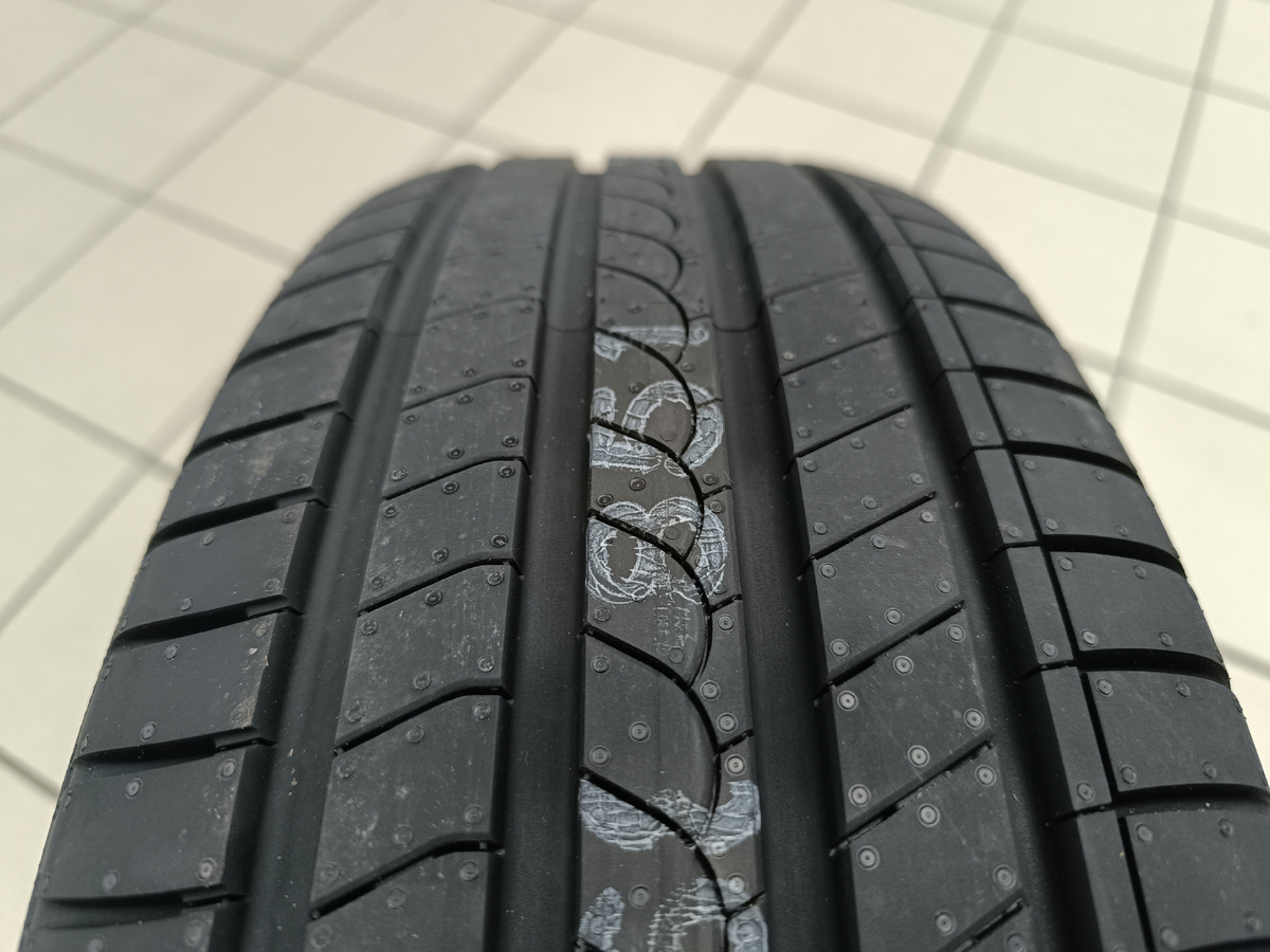 Внимание на рисунок протектора, который демонстрирует ассиметричную компоновку. Центральная часть снабжена сплошными блоками, обеспечивающими надежное сцепление с дорогой. К тому же, особая изогнутая канавка ускоряет отвод воды, что критично для безопасности на мокрой дороге.