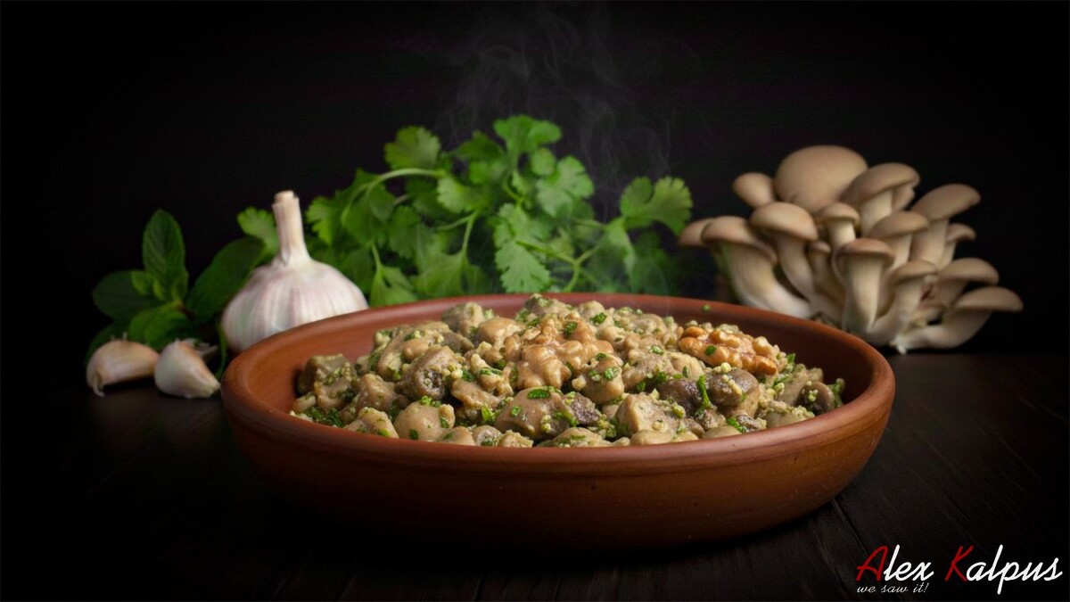 Грузинская кухня, богатая ресурсами предгорий и гор, исторически использует грибы, которые изобилуют в лесах страны. Их жарят, тушат и фаршируют, а ореховые соусы, например, баже, остаются визитной карточкой грузинской гастрономии. Сочетание грибов с орехами кажется абсолютно органичным и традиционным.