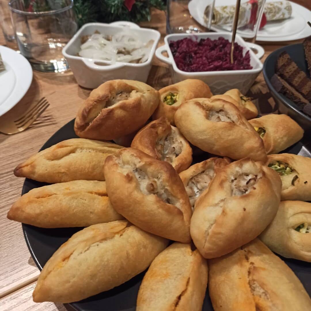 На столе ликует атмосфера дружеского общения, а в воздухе витает аромат свежей выпечки. Какой ужин обойдется без аппетитных пирожков? Большие пироги всегда внушают уважение, но миниатюрные пирожки создают атмосферу уюта и позволяют всем попробовать сразу несколько начинок. Эти вкусные угощения имеют три классические начинки: рыбная, мясная и грибная — выбор, который не разочарует ни одного гостя.
