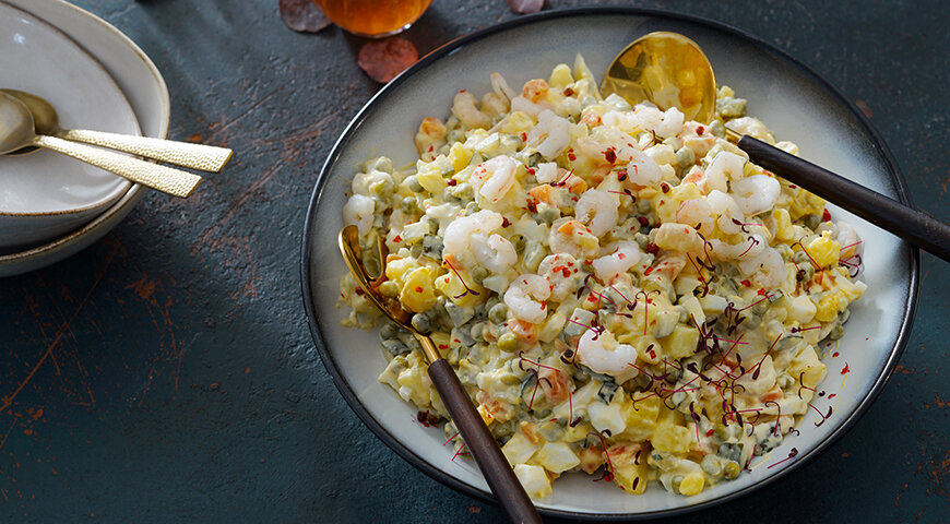 Хотите избавиться от привычного оливье и удивить своих гостей? Обратите внимание на удивительный вариант классического салата — оливье с креветками, который станет настоящей изюминкой вашего стола.