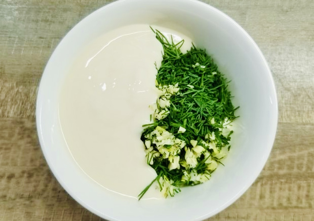 - Огуречный соус (дзадзики): добавьте натертый и отжатый свежий огурец с сушеной мятой.
